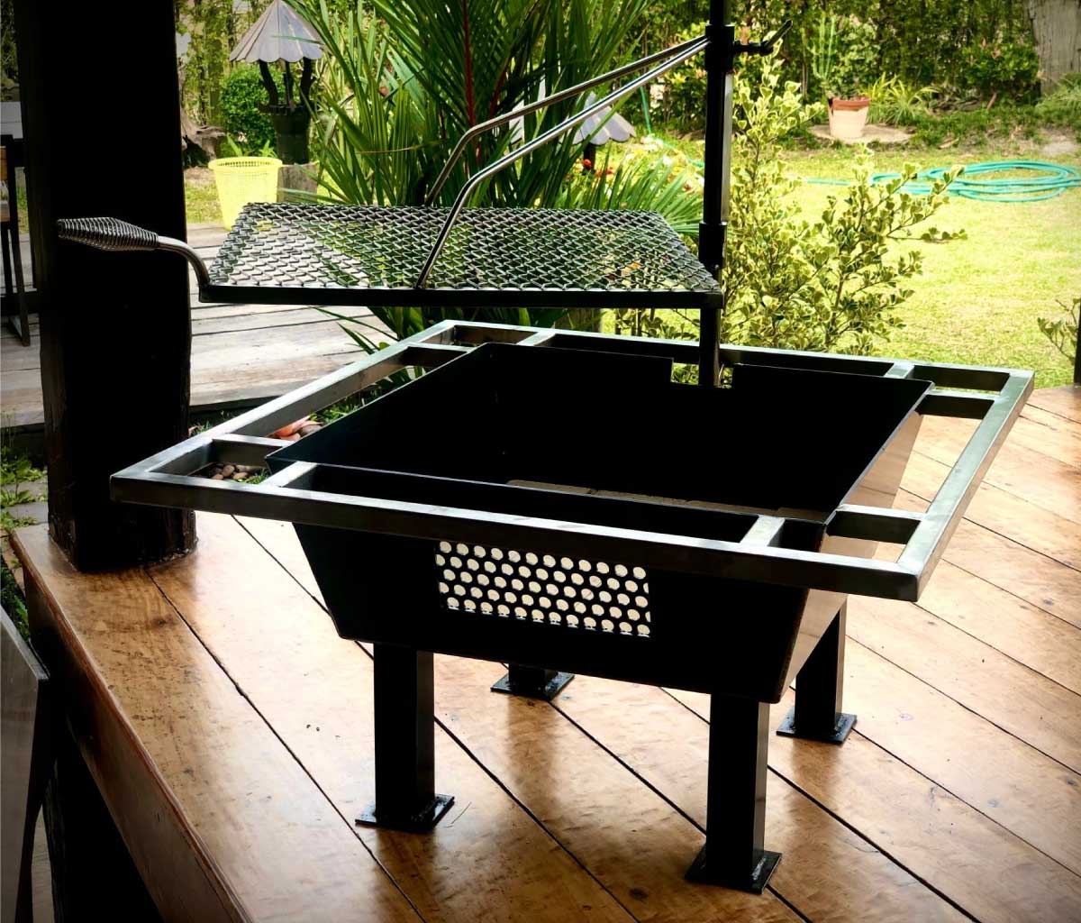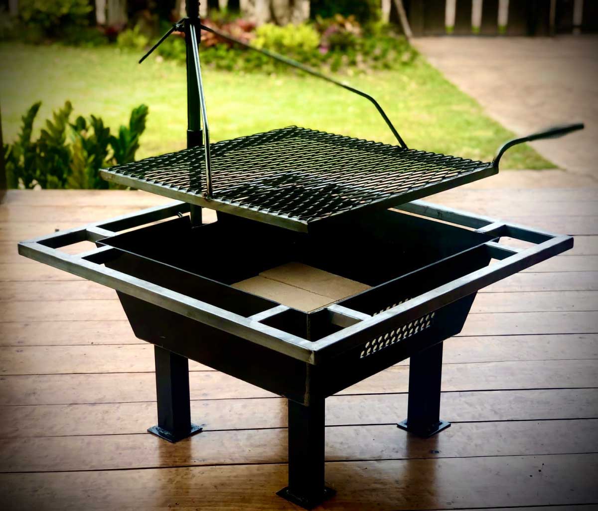Well……. this is the result, our BBQ-A4. A versatile BBQ that can swing out to quickly add some wood/charcoal and can go up and down to control the heat.