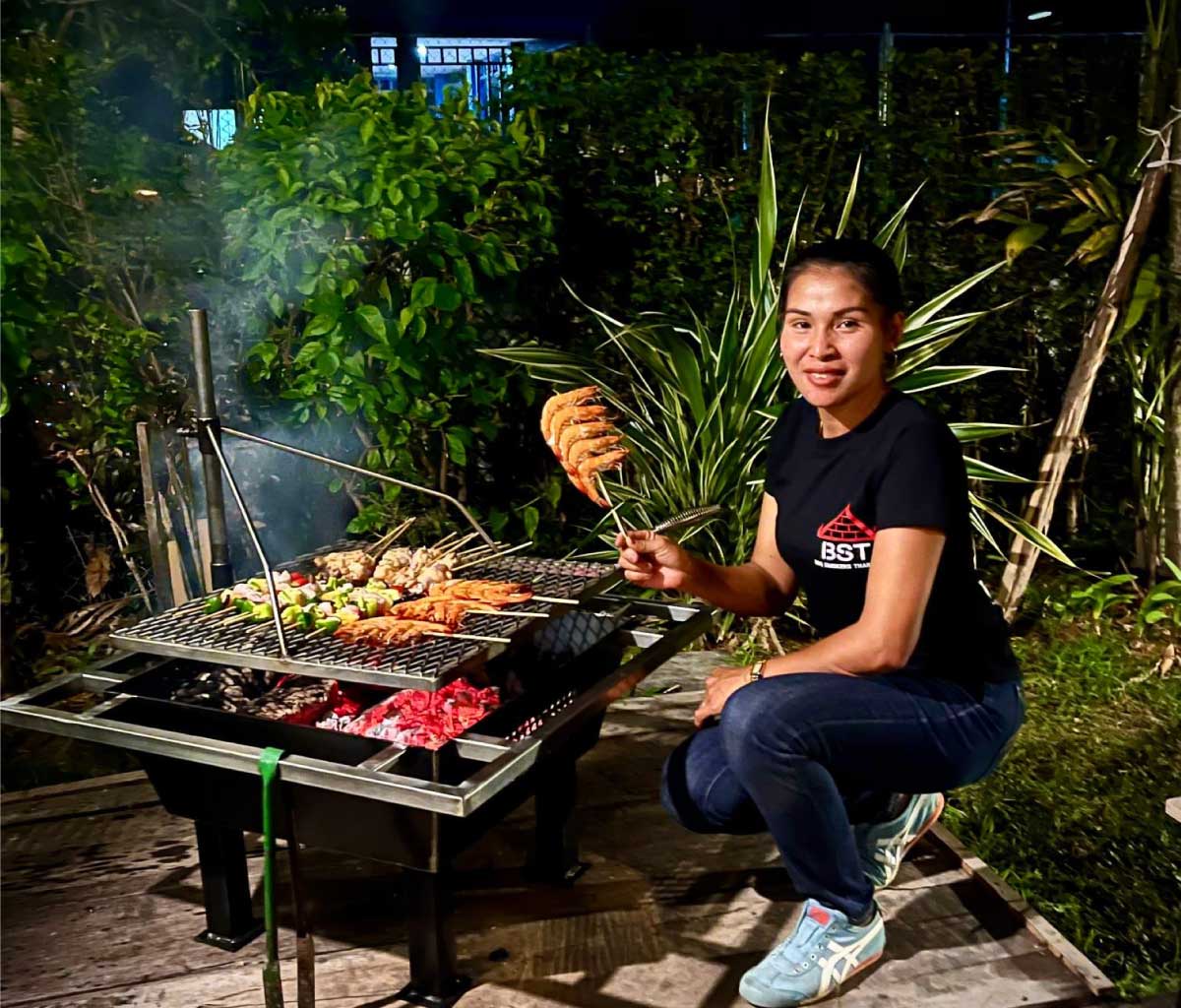 I know that most of you guys know how your wives love to cook on this small concrete BBQ’s. And I think that most of you have them at home as well. And I must say, to cook sticky rice they are perfect!! But for us, farlang and Thai husbands, these things are to small to cook a nice steak on.